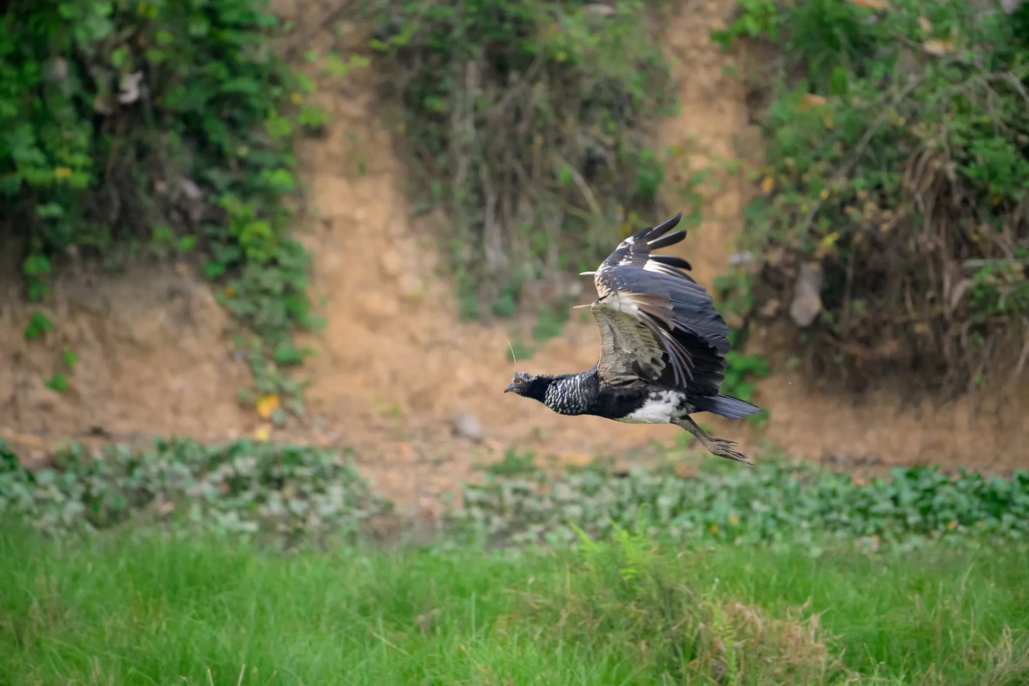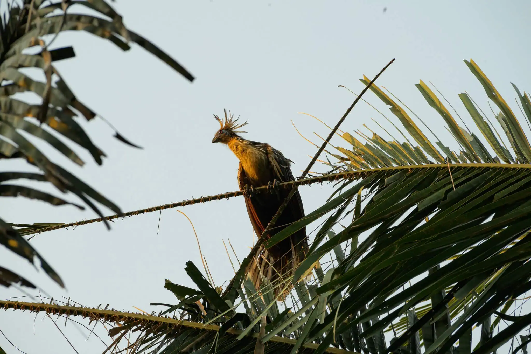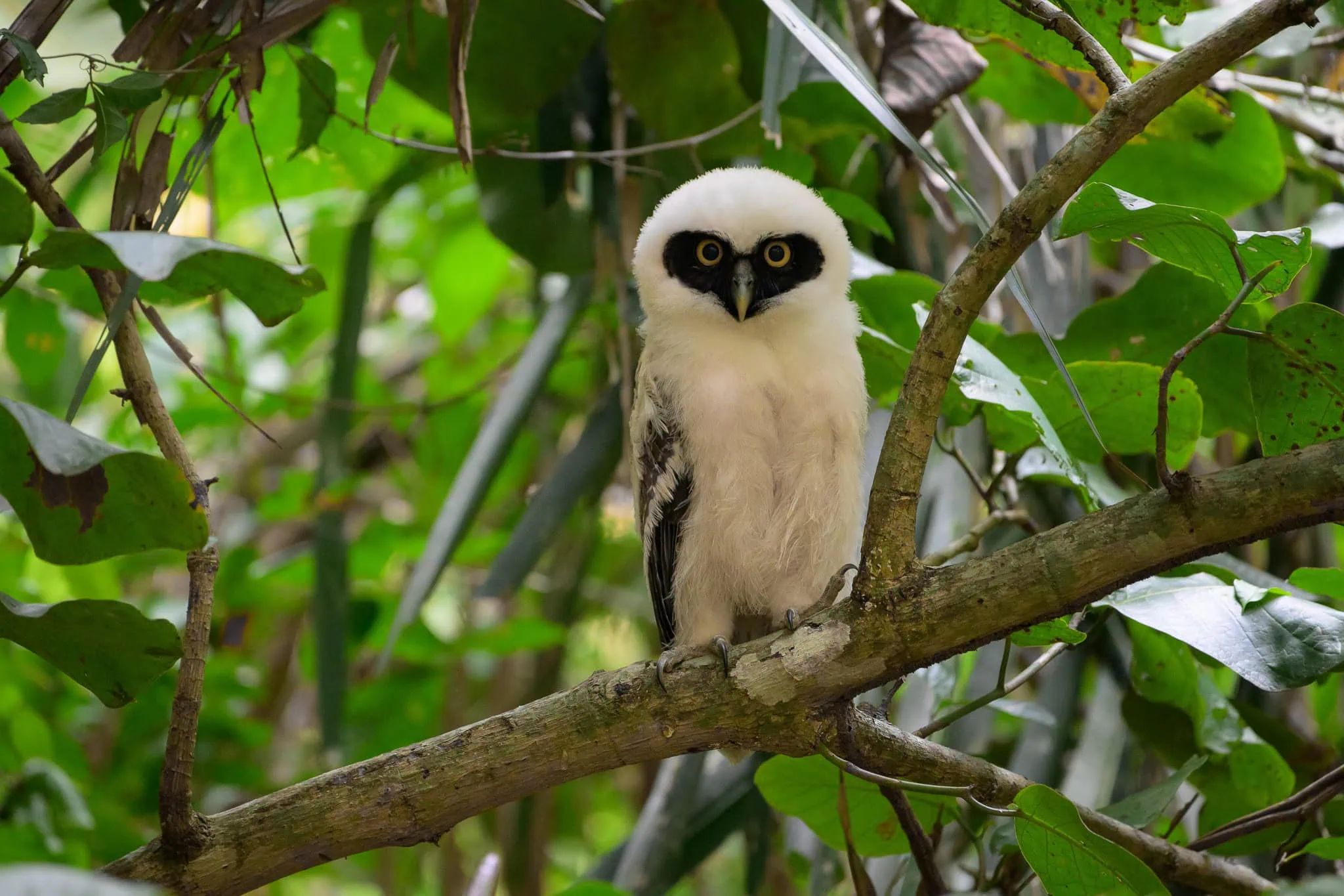 Frisch ausgeruht führte uns Yilmer durch den angrenzenden Wald. Er erzählte viel über die lokalen Pflanzen und ihre Nutzung. Plötzlich entdeckte er einen jungen Brillenkauz (Pulsatrix perspicillata perspicillata) im Geäst. Kurz darauf zeigte er uns auch das adulte Tier. Während der Jungvogel seelenruhig sitzen blieb und sich geduldig fotografieren ließ, hielt das erwachsene Tier respektvollen Abstand.