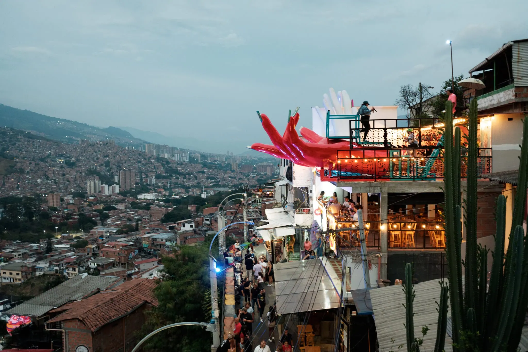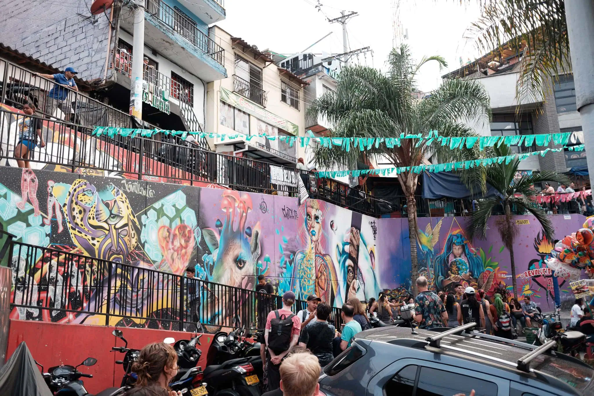 Am Nachmittag nahmen wir an einer Free Walking Tour durch die Comuna 13 teil. Noch 1991 zählte das Viertel zu den Orten mit den höchsten Mordraten der Welt, heute befindet es sich im Wandel. Viele Graffiti und Murals erzählen von der Gewalt, die vor 30 Jahren hier herrschte. Heute prägen Nachtclubs, Bars und eine lange Freiluftrolltreppe das Bild. Aber auch hier tauchte Pablo Escobar allgegenwärtig auf: Er lächelte auf T-Shirts, es gab Look-a-likes mit Funkgeräten, und man konnte Masken mit seinem Gesicht erwerben.
