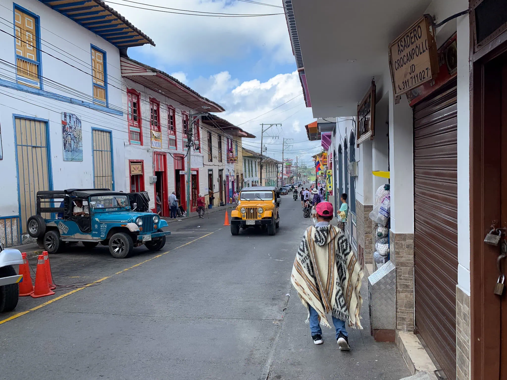 Am nächsten Tag fuhren wir mit einem Jeep ins Valle de Cocora. Dort erwartete uns ein ganz besonderer Guide: ein Hund, der uns auswählte und uns zu den schönsten Aussichtspunkten führte. Leider wurde er uns auf einer Hütte von anderen Wandernden „abgeworben“, sodass wir den Abstieg alleine antreten mussten. Sechs Stunden waren wir insgesamt unterwegs, sahen unzählige Wachspalmen – aber keinen einzigen Kondor. Wir blieben noch einige Tage in Salento, unternahmen eine Reittour durch die Kaffeeplantagen, erkundeten die Stadt und erholten uns von den Strapazen der letzten Wochen. Dann hörten wir, dass Filandia noch schöner sein soll – also packten wir unsere Sachen und zogen weiter. Das schnelle Fazit: Filandia ist kleiner als Salento, aber gefühlt deutlich lebendiger. Die Auswahl an nicht frittierten vegetarischen Gerichten war allerdings eher begrenzt.